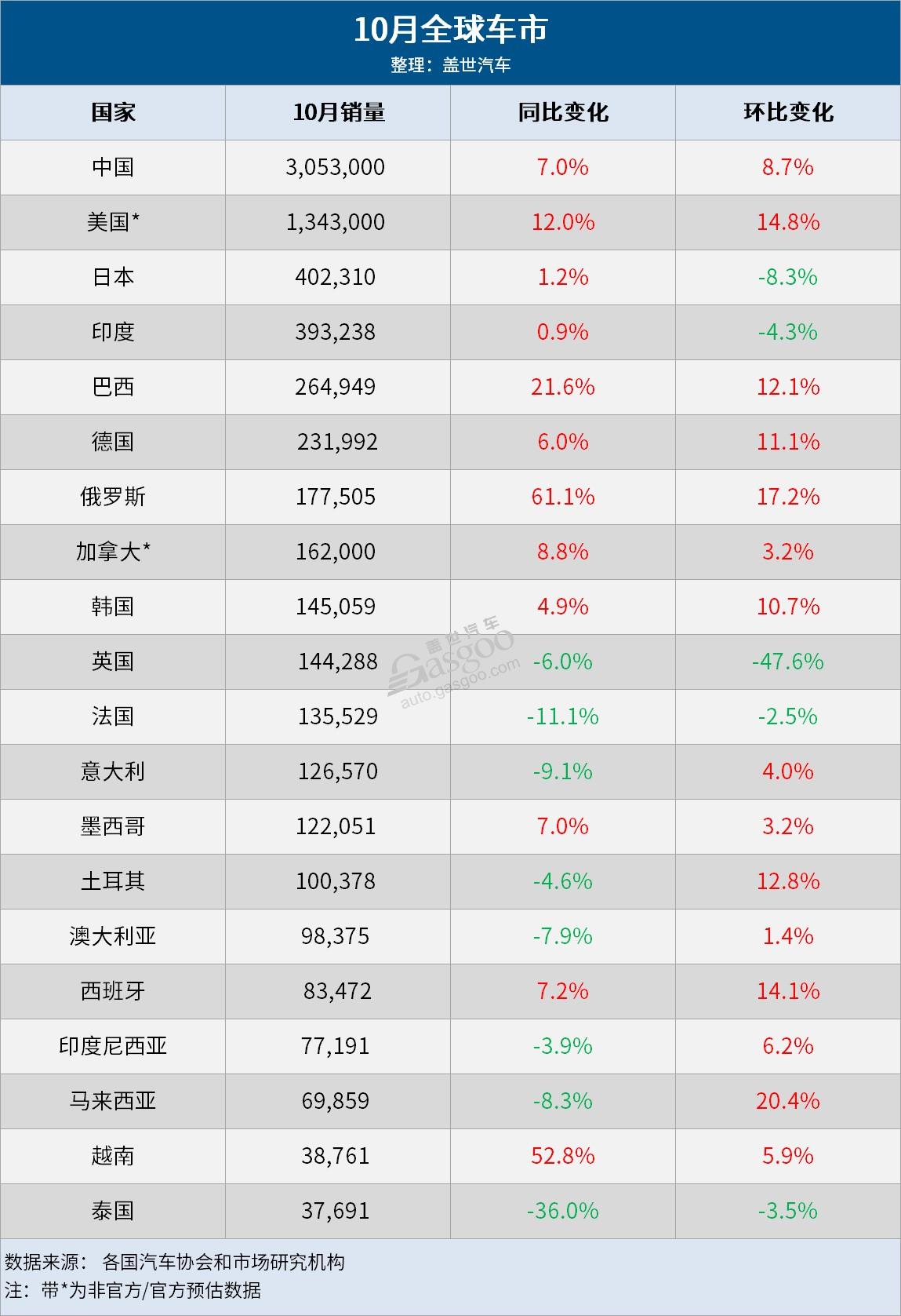 全球车市:“银十”成色十足,多数车市迎增长