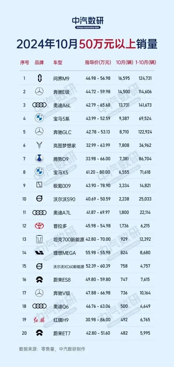 首先是雄踞五十万元车型销量榜首的问界M9。