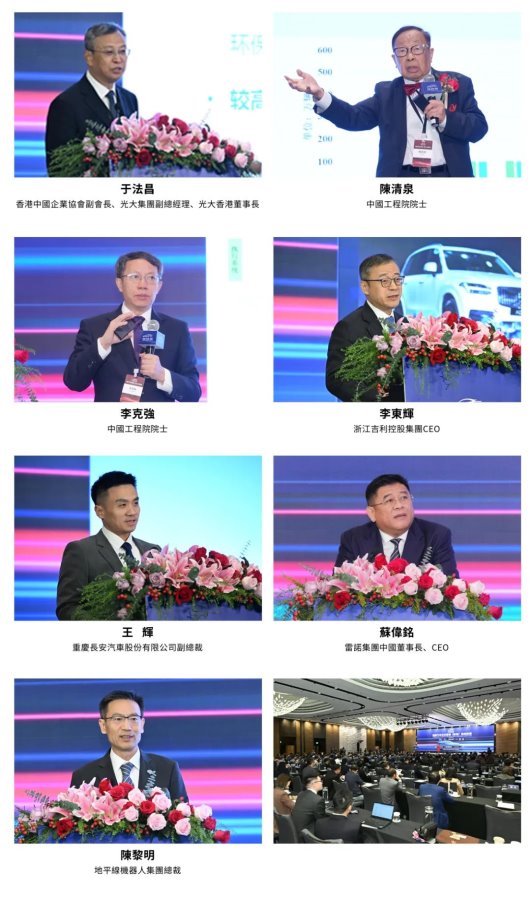 在上午的论坛上,香港中国企业协会副会长、光大集团副总经理、光大香港董事长、总裁于法昌,中国工程院院士陈清泉、李克强;浙江吉利控股集团首席执行官李东辉;重庆长安汽车股份有限公司副总裁王辉,雷诺集团中国董事长、首席执行官苏伟铭,地平线机器人集团总裁陈黎明进行了主旨演讲,各位嘉宾对行业出海的相关政策、法规、条件、机会等进行了深度探讨、观点分享和未来展望。