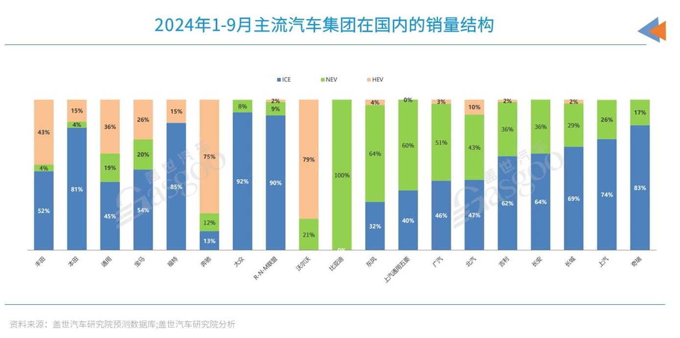 再者,还有不少合资品牌,转型并不十分彻底。时至今日,依旧有不少合资品牌至少还在坚持油、电同步发展,纷纷提出了所谓的油电同智概念,想要继续挖掘燃油车的潜力。但在车元未来派研究院看来,燃油车是否会因为有了智能化加持而变得更有竞争力,是不确定的。从实际情况看,今年已经上市的部分“加智”燃油车,市场效果其实并不十分理想,燃油车总体还是处于下滑状态。