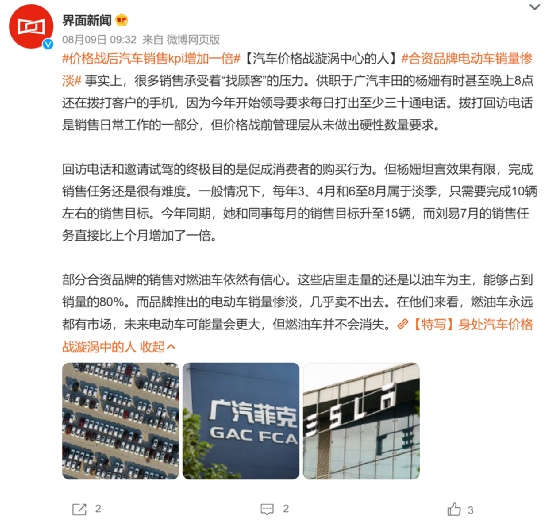 这是缸哥最近在最近探店的时候听到一位销售经理对销售人员的“训话”。而值得一提的是,销售人员在随后说了一句“明明上个月才提了500,这个月又提,我们等于白卖车了”。毋庸置疑,在价格战斗争到白热化的时候,一线销售人员已经感受到更深层次的压力,不单单是日益增加的工作量,还有加不动甚至后退的绩效。