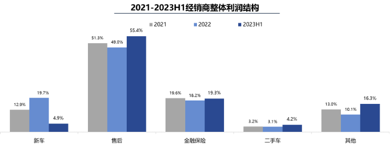 具体来看, 2022 年底新车销售利润为 19.7%,而今年上半年,仅为4.9%。这种利润的大幅度下滑,让经销商的压力无形之中增大不少,卖车不赚钱,4S店仿若在“断臂求生”。