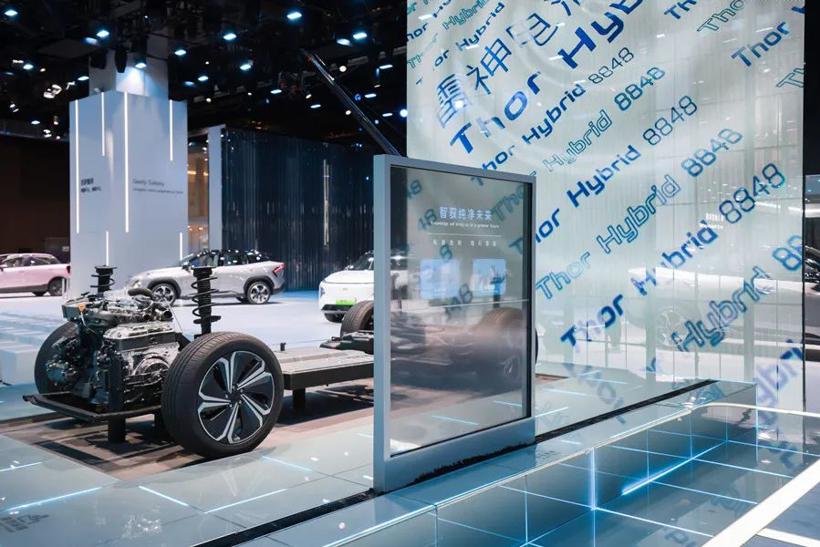 另一方面,吉利也在开发高效动力系统。比如雷神电混8848,热效率达到44.26%,百公里馈电油耗5.23升;比如第四代帝豪醇电混动车型,采用甲醇发动机+混动电驱变速器,百公里醇耗9.2升。