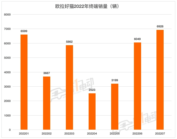 从1-7月份上险量来看,欧拉好猫月均销量维持在5000辆左右,销量最高也就7月份的6928辆,2月、4月和5月份销量都有不同程度的下滑。欧拉好猫推出更便宜的车型,无疑扩大了消费者的选择范围,为想要花更便宜的价格买到好猫的消费者提供一个新的选择。