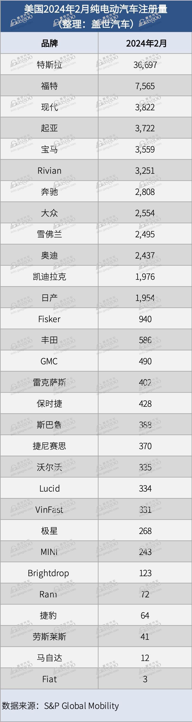 今年2月,特斯拉在美国的注册量为36,697辆,而去年同期为49,209辆;特斯拉在美国电动汽车市场的份额从2023年2月的61%降至46.8%,但注册量在美国依然是排名第一。