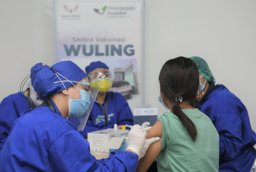 (“Bersama Wuling Lawan Corona”(与五菱,同抗疫)免费疫苗接种活动)